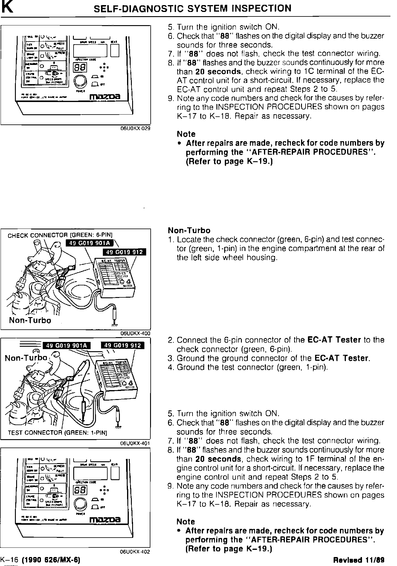 Listed below are pages for the 1990 626/MX-6 Workshop Manual which required revisions. Please replace the current pages with the replacement pages provided.