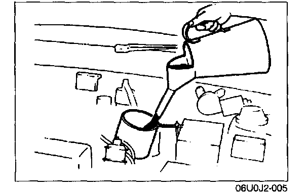 4. Replace the drain plug, and add the necessary amount of the specified oil through the speedometer gear case hole.