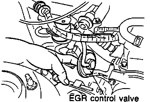 WARNING: Be careful when checking EGR control valve; surrounding area is very hot.