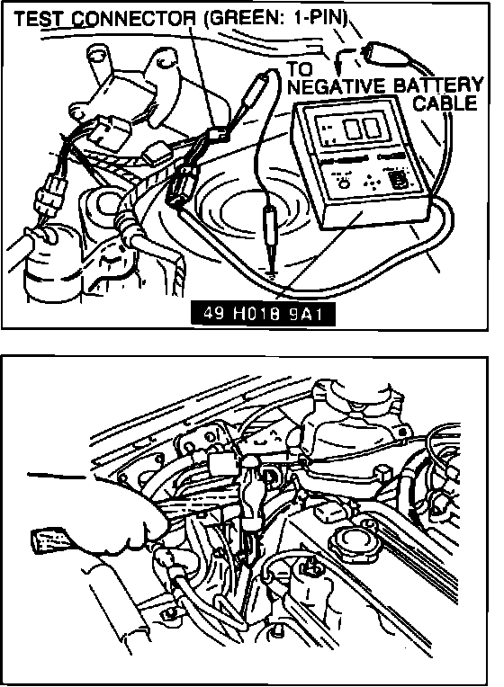1. Connect Mazda Self-Diagnosis Checker (SST #49 H018 9A1) or equivalent aftermarket "Scan" tool to check connector.