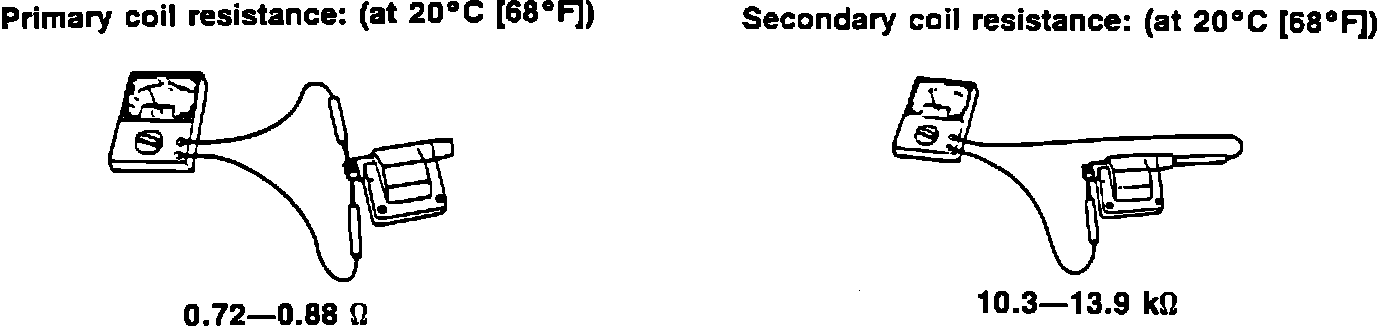 Check primary resistance across coil terminals as indicated on image. If not within specification, replace coil.