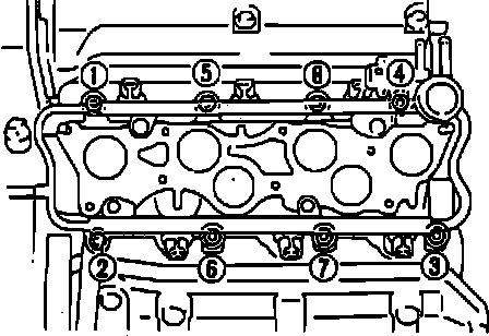 Fig. 4 Cylinder Head Bolt Loosening Sequence. SOHC Engine: