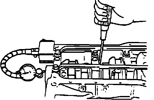 30. Remove oil pan mounting bolts, then use a screwdriver to pry oil pan away from cylinder block.