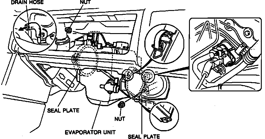 9. Remove drain hose, unit retaining nuts, then evaporator unit.