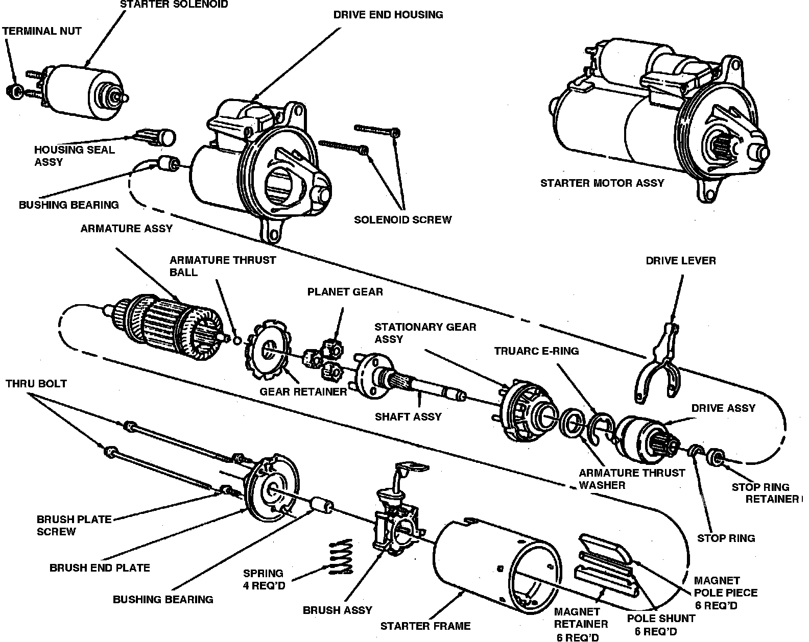 Fig. 16 Exploded View Of Starter. B2200/B2600 W/F2 Engine & A/T, MX-6, RX-7, 323/Protege W/BP Engine & A/T, 626 & 929: