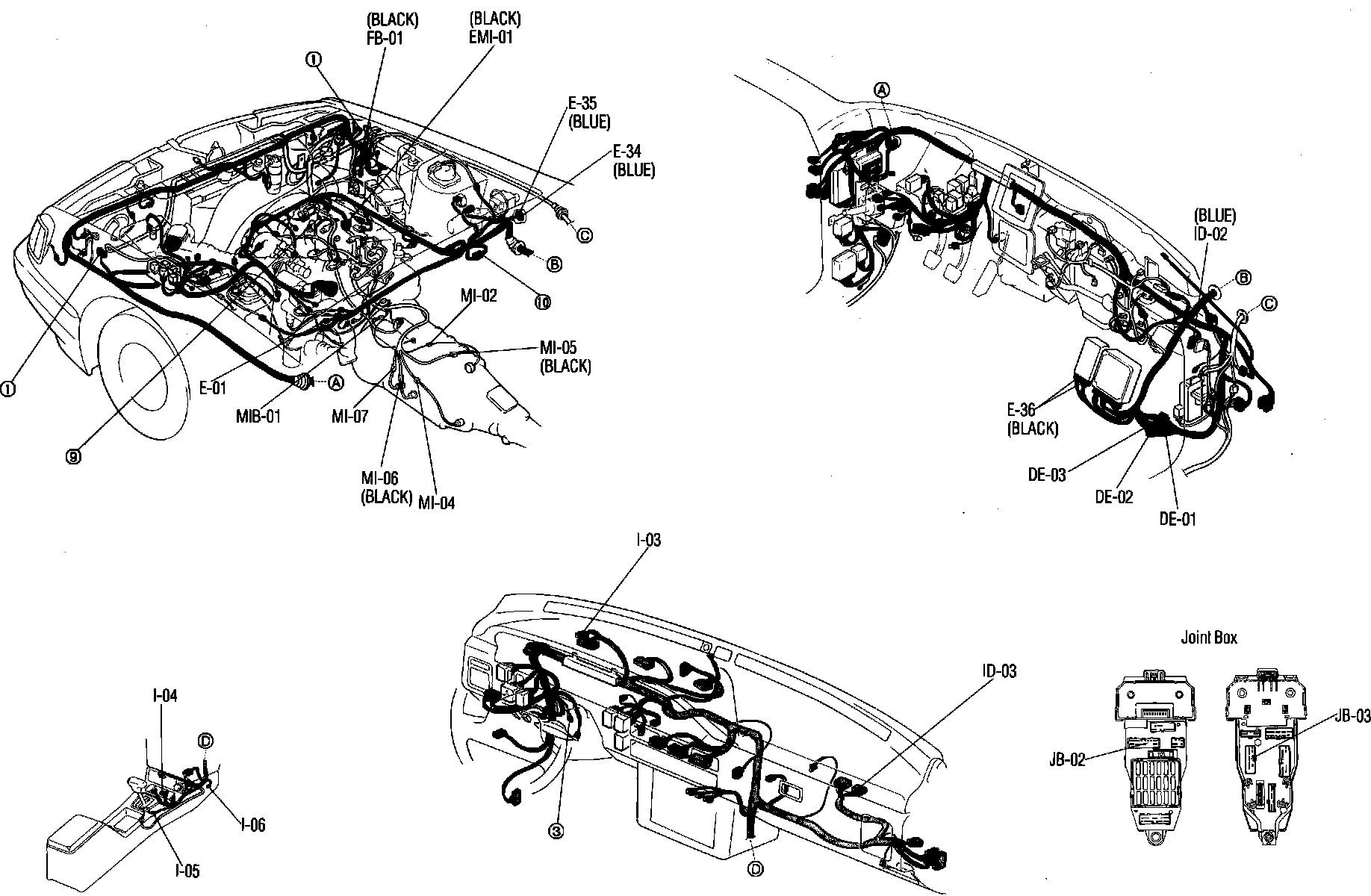 Automatic Transmission Control Unit & Shift Lock System. SOHC Engine. Harness Locations: