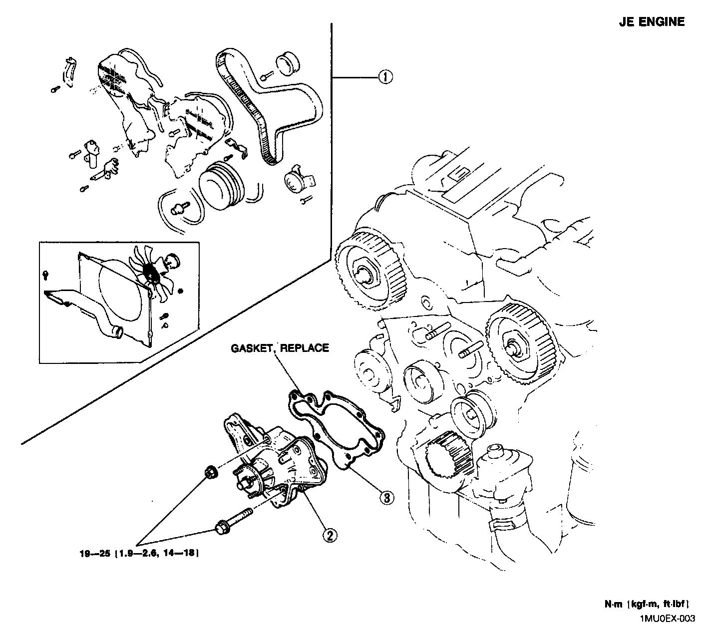 (1) Timing Belt (2) Water Pump (3) Gasket:
