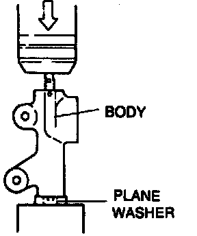 1. Set a plane washer at bottom of the tensioner body to prevent damage to the body plug.