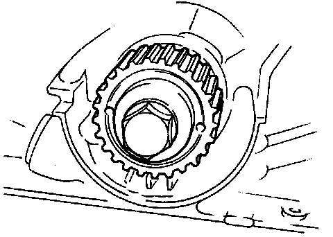 11. Remove the crankshaft pulley lock bolt.