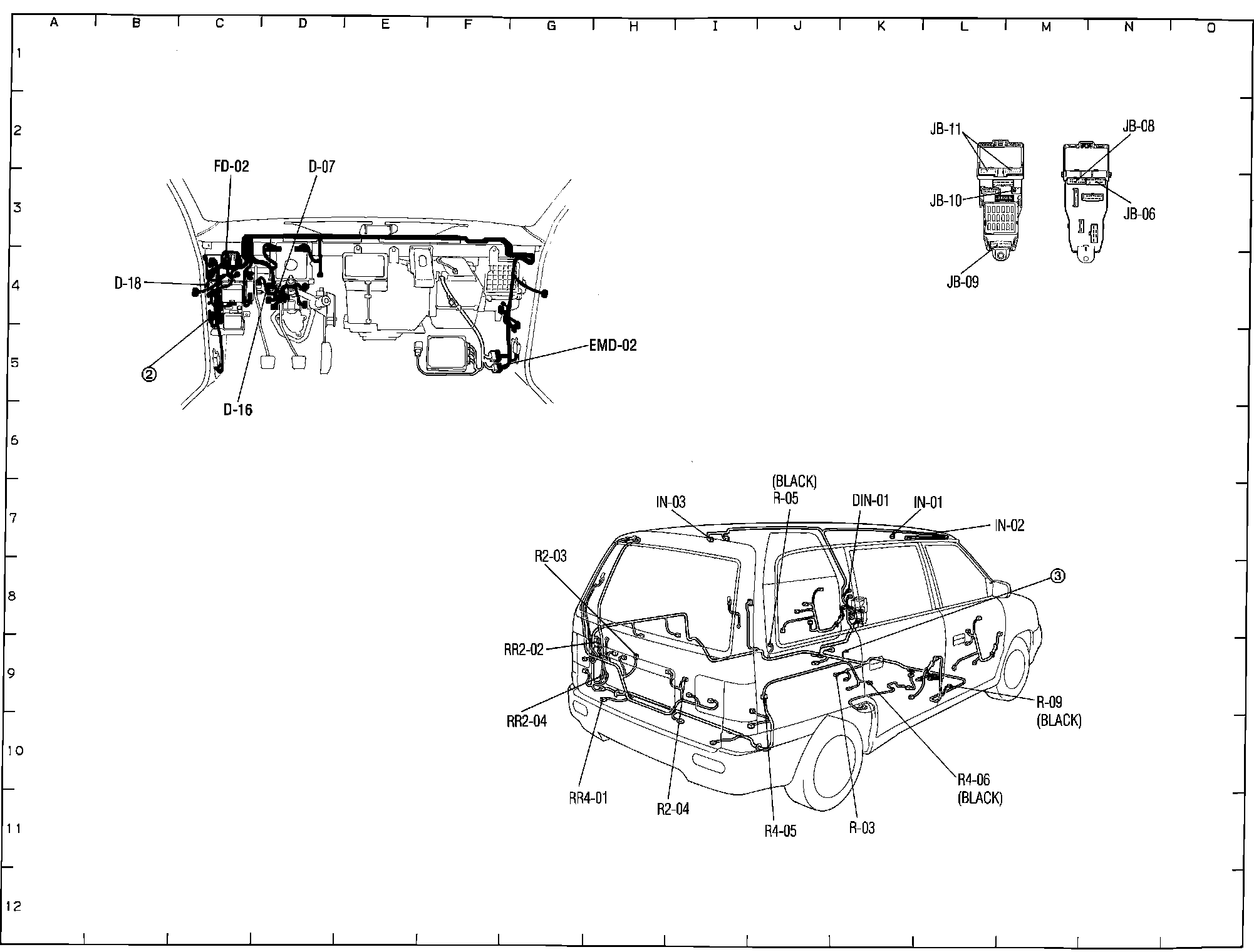 Interior Lamps, Shift-Lock System & Central Processing Unit. Harness Locations: