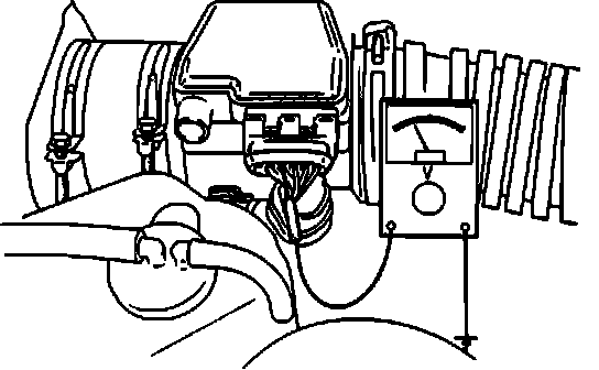7. Turn ignition switch "OFF" and check voltage at the airflow sensor terminal wire (G/O) and terminal (2K) of the ECU. Voltage should be 0V just after the ignition switch is turned "OFF." After 2 - 5 seconds, voltage should momentarily reach 8 - 12V and then return to 0V.