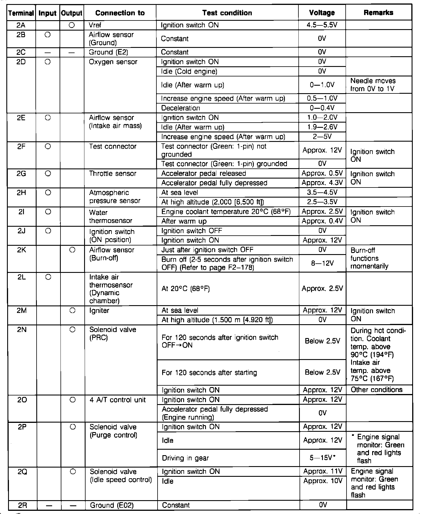 2. Before replacing an ECU, check components, wiring harnesses and terminal contacts if terminal voltage readings are incorrect. Repair as needed and recheck voltage readings.