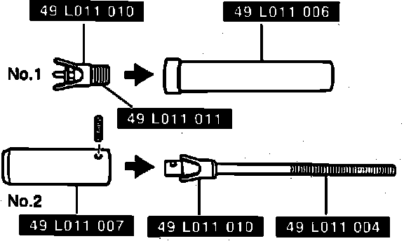 e. On 8 valve cylinder head, using valve spring lifter and pivot tools No. 49S120222 and 490636100A or equivalents, remove valves from cylinder head.