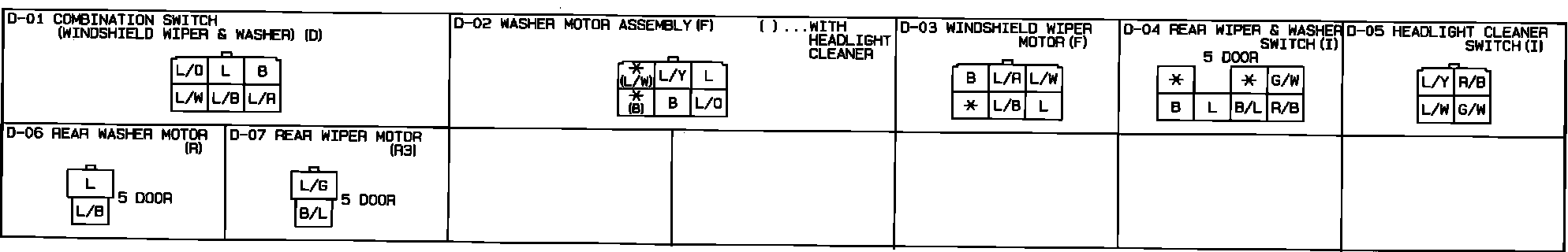 Windshield Wiper And Washer. Headlight Cleaner, Rear Wiper And Washer (5 Door). Connector Identification: