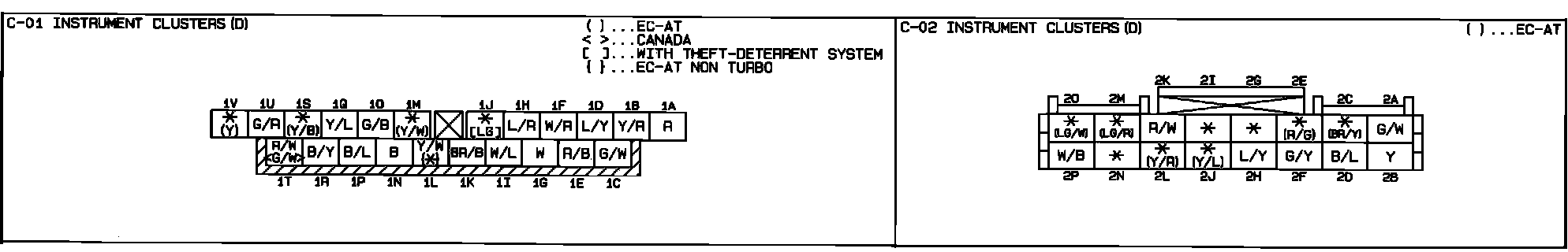 Instrument Cluster. Fuel, Fasten Belts, Cruise, ABS, RH And LH Turn, Check Engine And Hi Beam Indicator. Connector Identification: