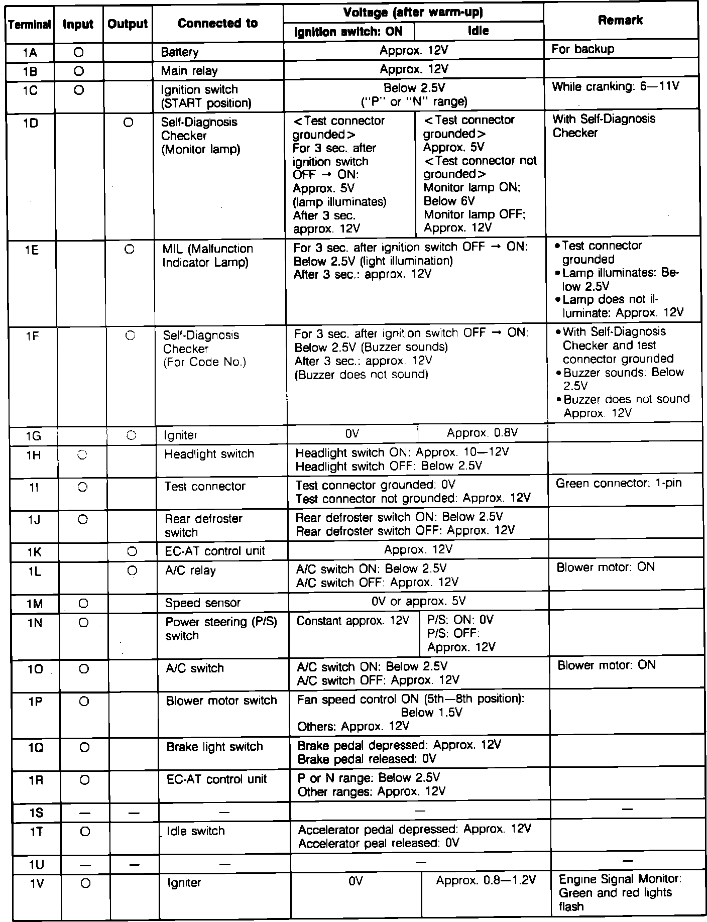 ECU Pin Voltage Chart (Part 1):