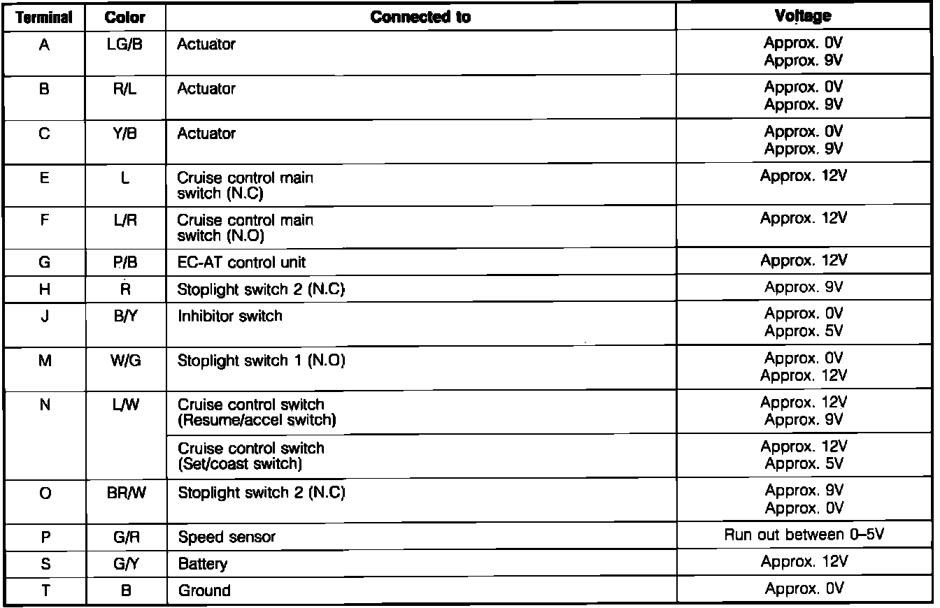 Auto Cruise Control System. ECU Pin Voltage Chart: