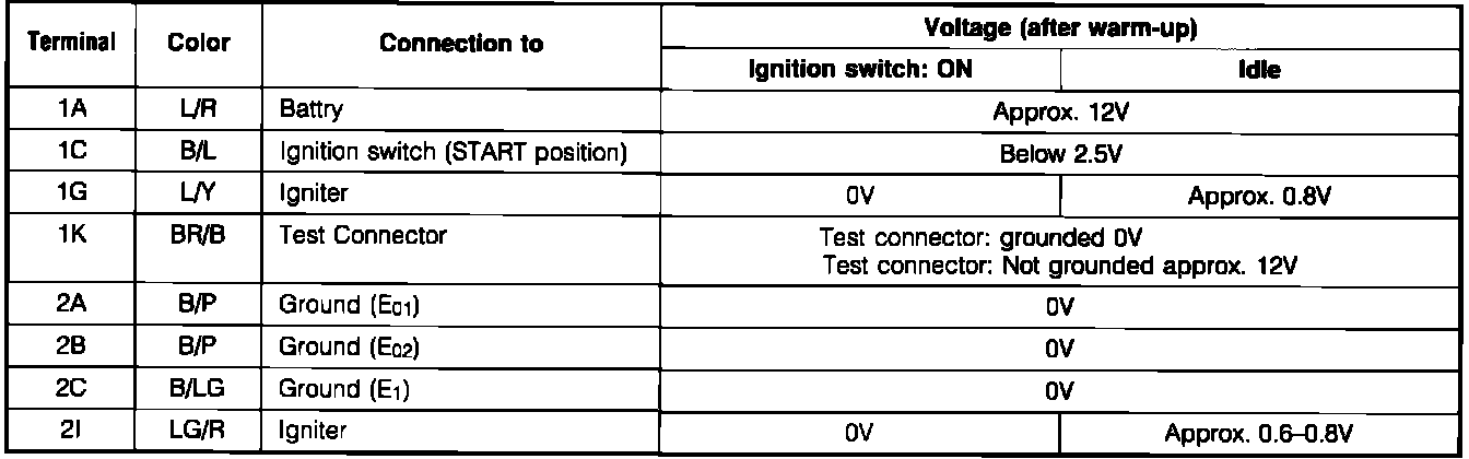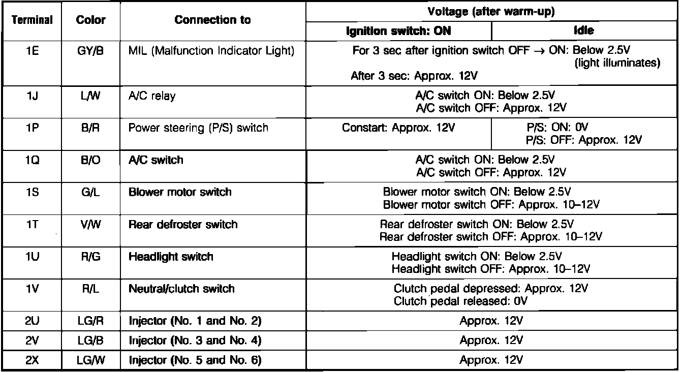 Engine Control System. EGI. ECU Pin Voltage Chart:
