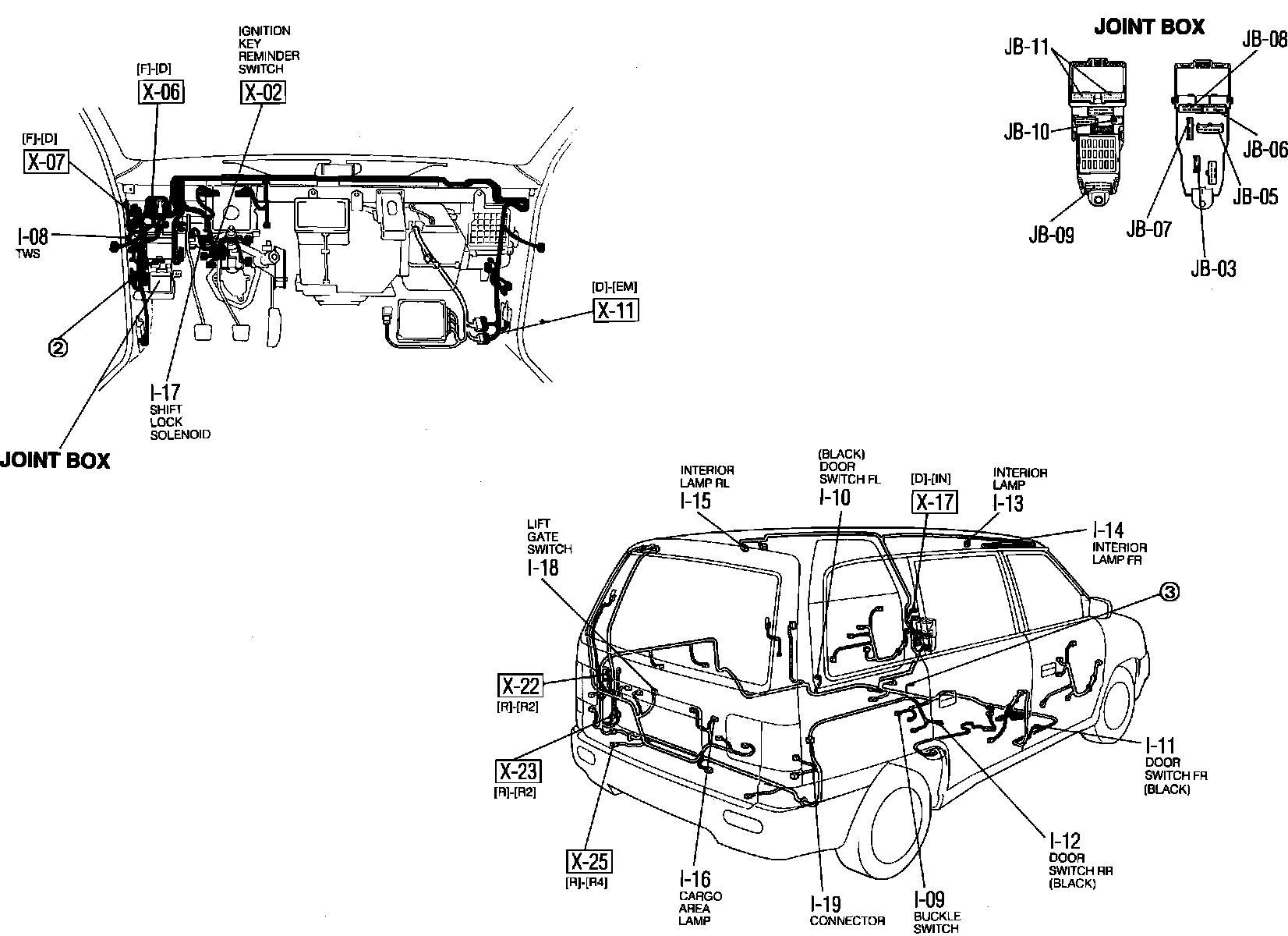 Interior Lamps, Shift-Lock System And Central Processing Unit. Harness And Connector Locations:
