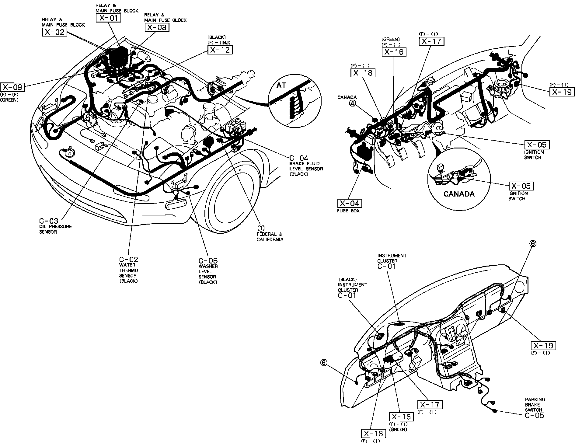 Instrument Cluster. Fuel, Oil And Temp. Gauge. Tachometer. Check Engine, Seat Belts, Charge, Brake, RH And LH Turn, Hi Beam, Airbag And Washer Indicators. Harness And Connector Identification: