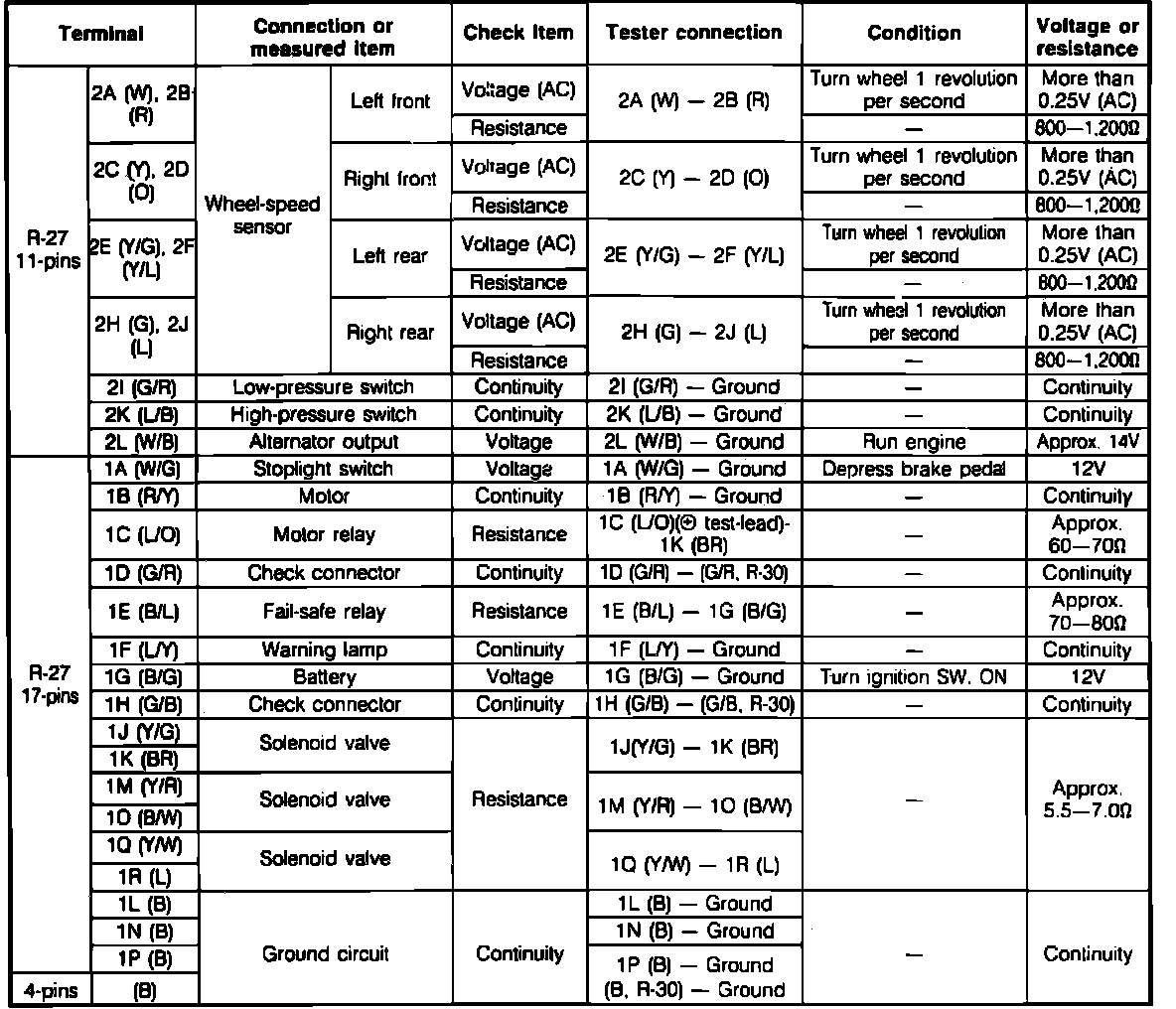 Anti-Lock Brake System. ECU Pin Voltage Chart: