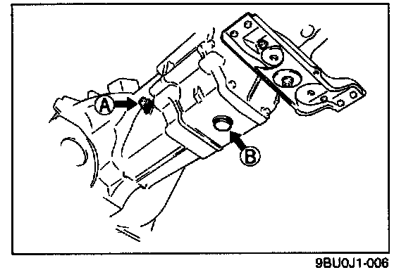 NOTE: Replace drain plug (B) washer with a new one whenever removed.1. Remove the plugs ((A) and (B) with washer).