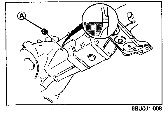 6. Add the specified oil from check plug (A) port until the level reaches the bottom of check plug hole.