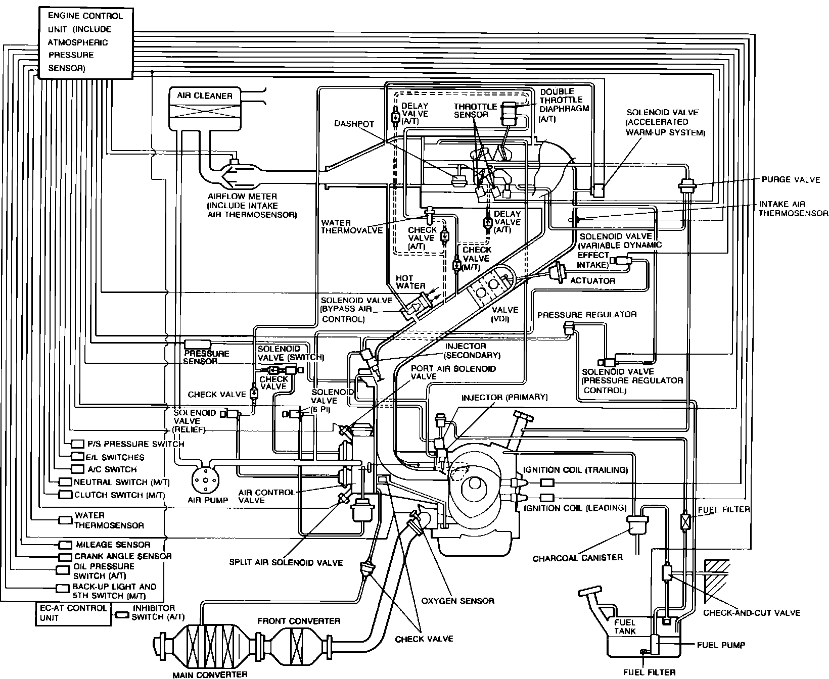 The Engine Control Unit (ECU) is the central component of this computerized fuel, ignition and emission control system. Mazda refers to the system as Electronic Gasoline Injection (EGI). To maintain fuel economy, good driveability and reduced vehicle emissions, the ECU monitors data from various sensors and controls functions such as the fuel injection system (air/fuel ratio), ignition system, emission control devices and on-board diagnostics.