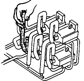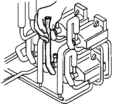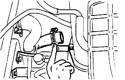 10. Disconnect the split air hose (check valve to intake manifold) at the intake manifold.