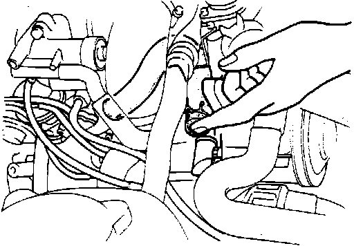1. Disconnect the air hose (intake manifold to catalytic converter) at the rear of the intake manifold.