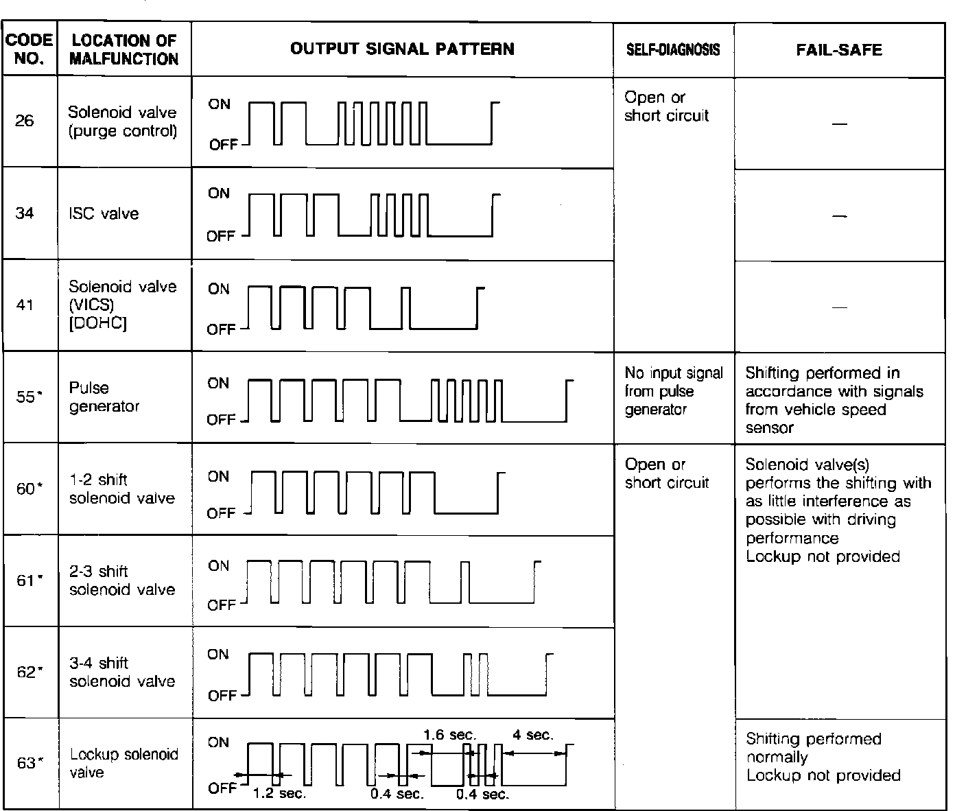 NOTE: The ECU constantly checks for input device malfunctions. However, it only checks output devices during a three second period after the ignition is switched "ON" and the diagnosis connector "TEN" terminal is grounded.