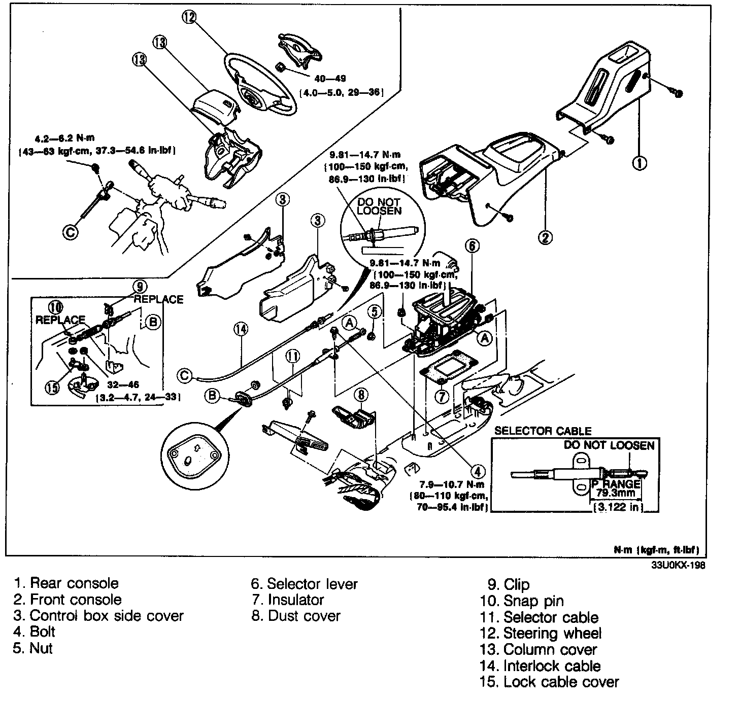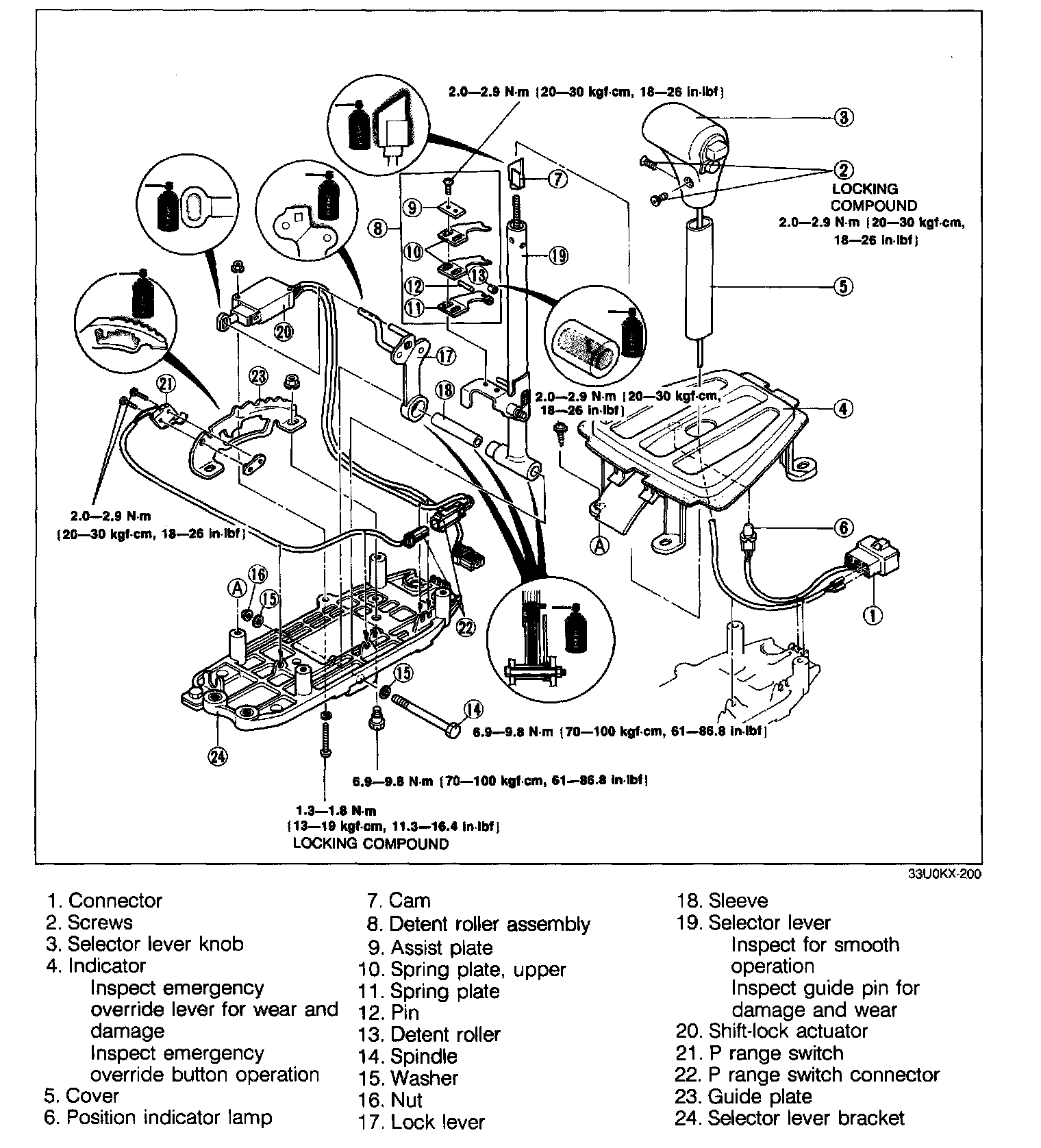 7. Verify that the selector lever properly aligns with the indicator in each range.
