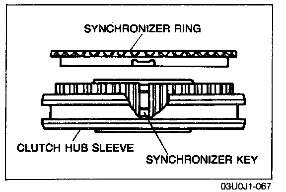 2. Align the synchronizer ring grooves with the synchronizer key during assembly.