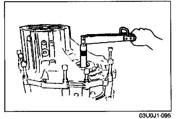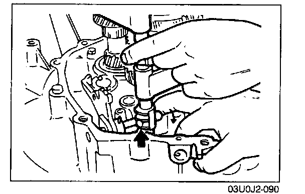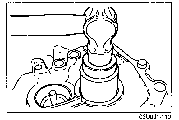 4. Set each clutch hub sleeve to the neutral position, and tap the shift rod from above so that the steel ball goes into the center groove (of the 3 grooves in the control end).