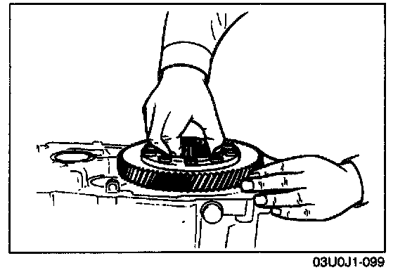 2. Measure the clearance between 1st gear and the differential drive gear.