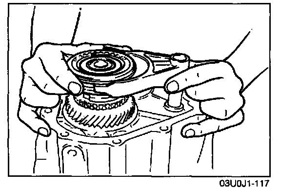 CAUTION: Apply transaxle oil to the bearing outer race.