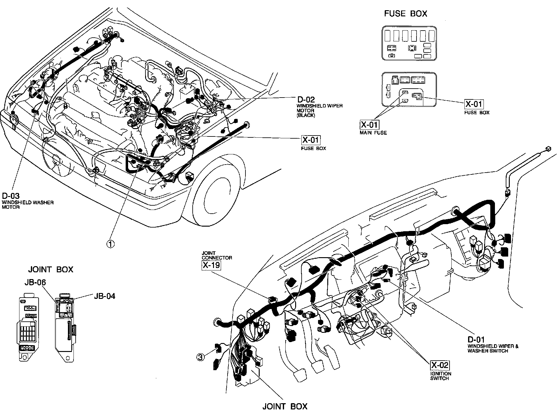 Windshield Wiper And Washer. Less Cruise Control. Harness And Connector Locations: