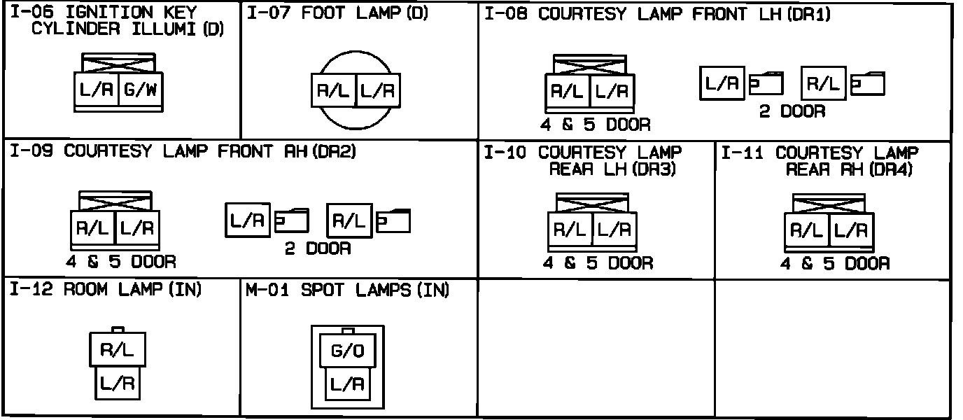 Ignition Key Cylinder Illumination, Courtesy, Room, Foot And Spot Lamps. Connector Identification: