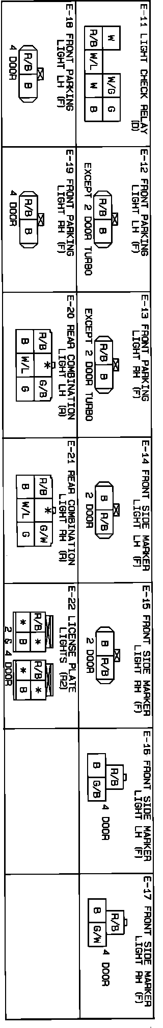 Tail, Front Parking, License Plate, Front And Rear Side Marker Lights. Connector Identification: