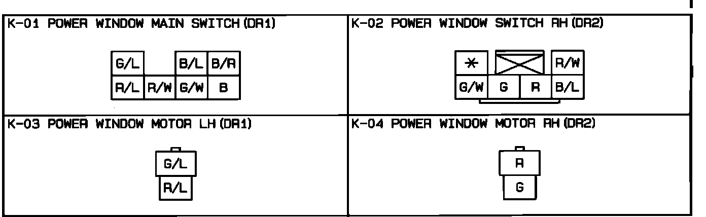 Power Windows. 2 Door. Connector Identification: