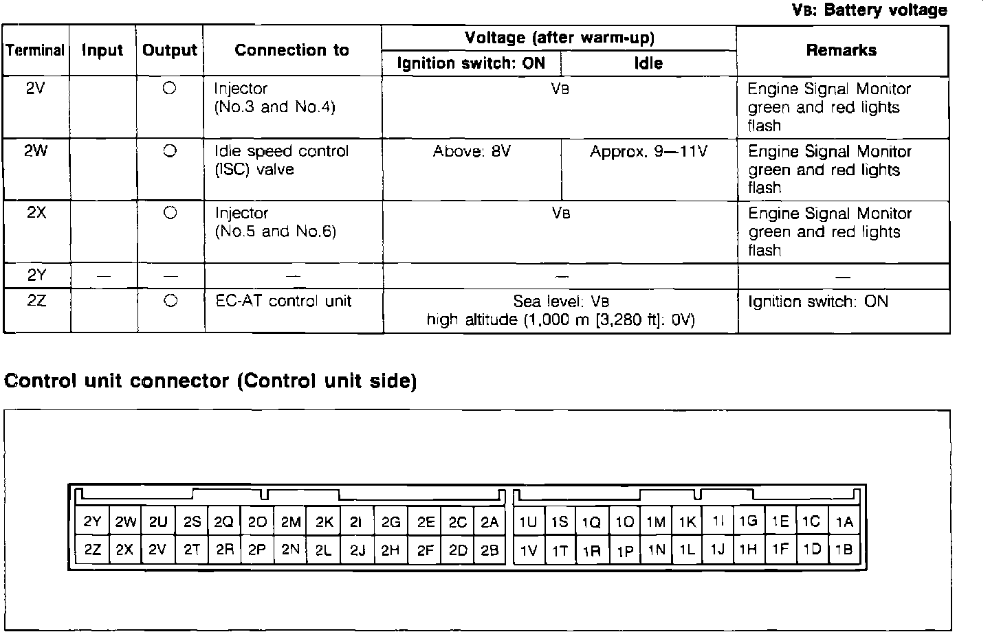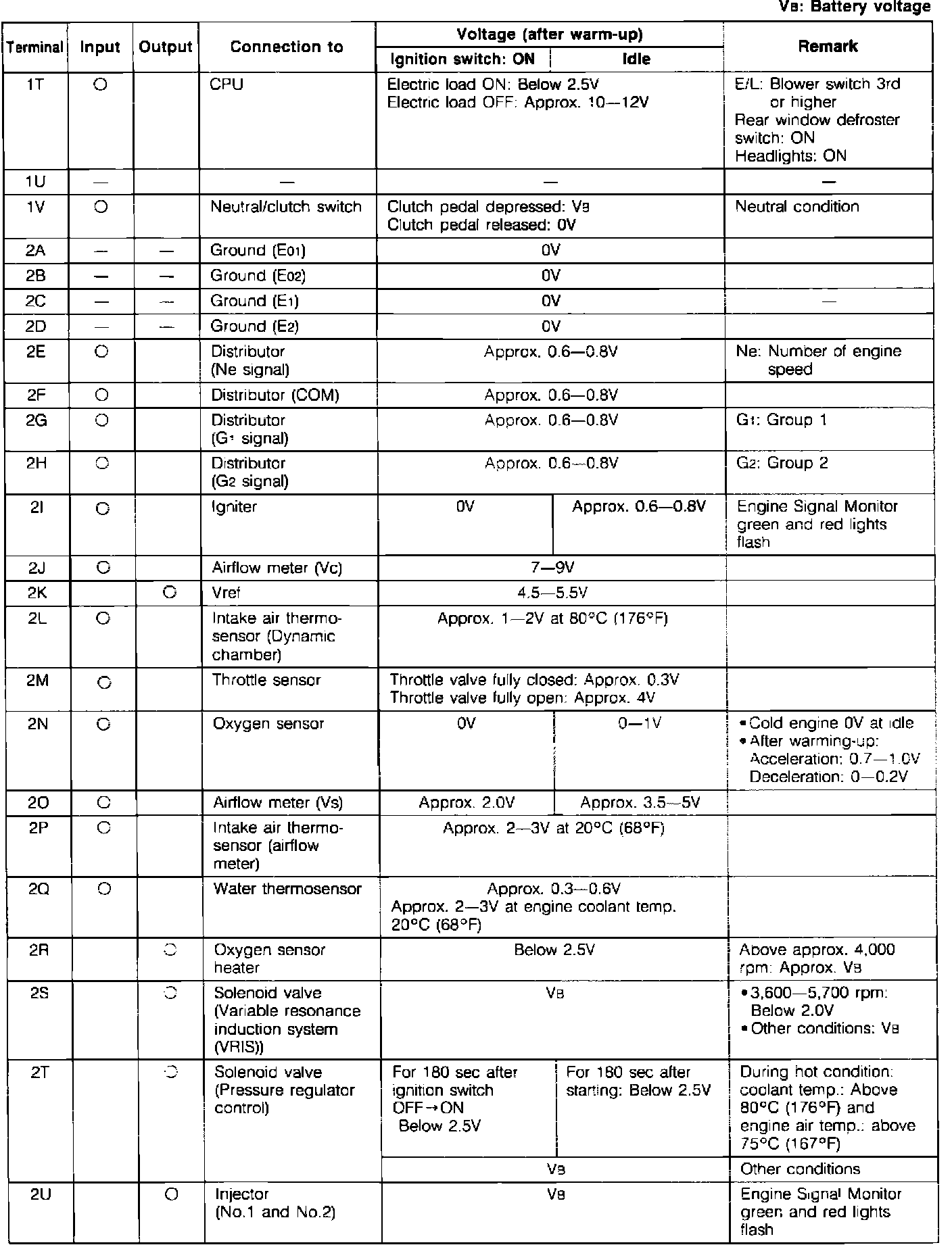 1. If factory test equipment is not available, use only digital volt/ohm meter with minimum 10Meg ohms internal impedance for testing ECU terminal voltages.