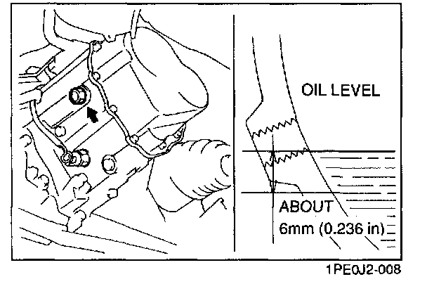 4. Remove the oil level plug with washer add the specified amount and type of oil through the oil level plug hole until the level reaches the bottom of the oil level plug hole.