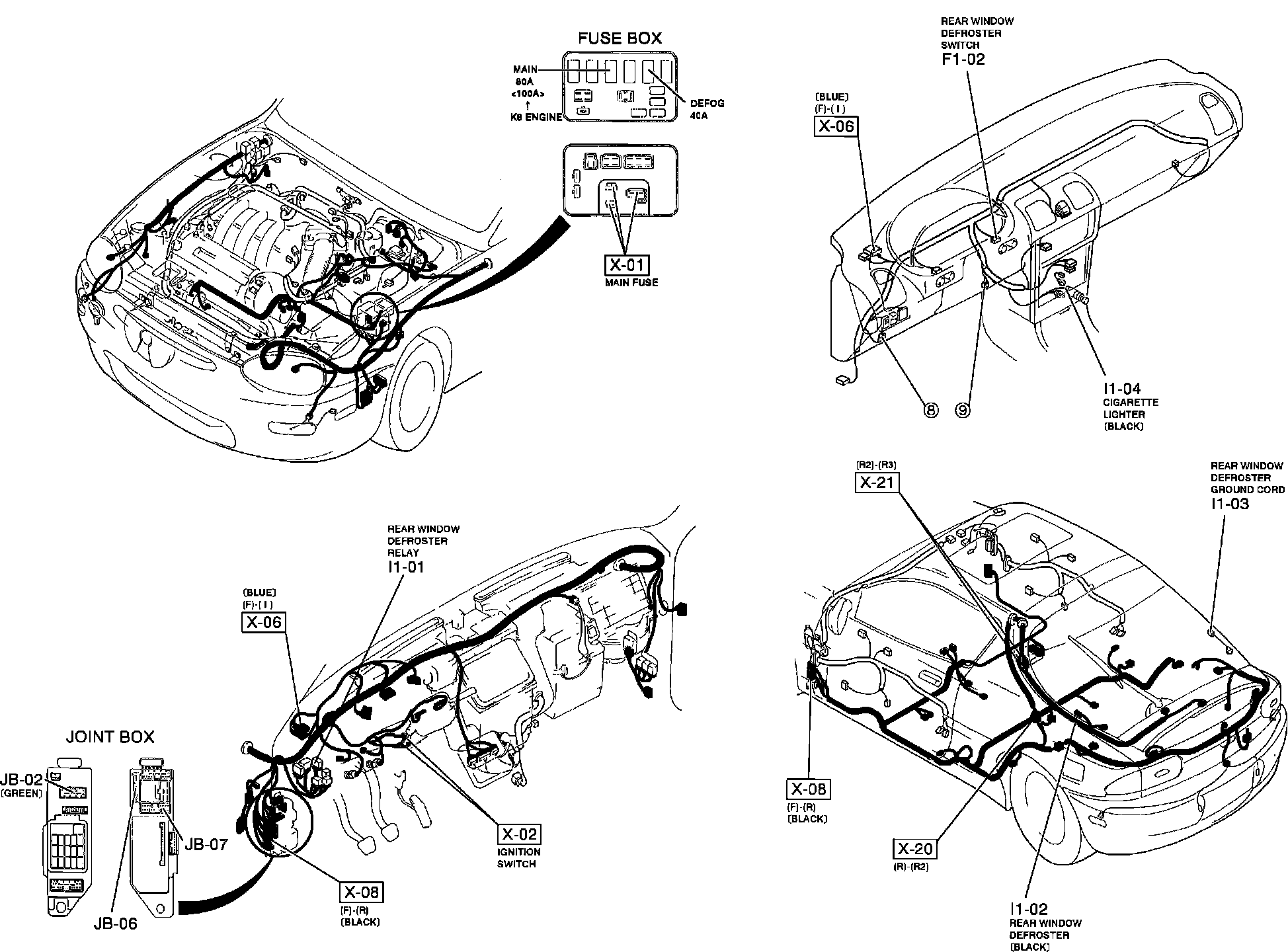 Rear Window Defogger And Cigar Lighter. Harness And Connector Locations:
