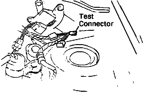 The Test Connector is a green, one pin connector located in the engine compartment. When grounded, the test connector activates the self-diagnostic system and causes the dash mounted "CHECK" light to flash malfunction codes.