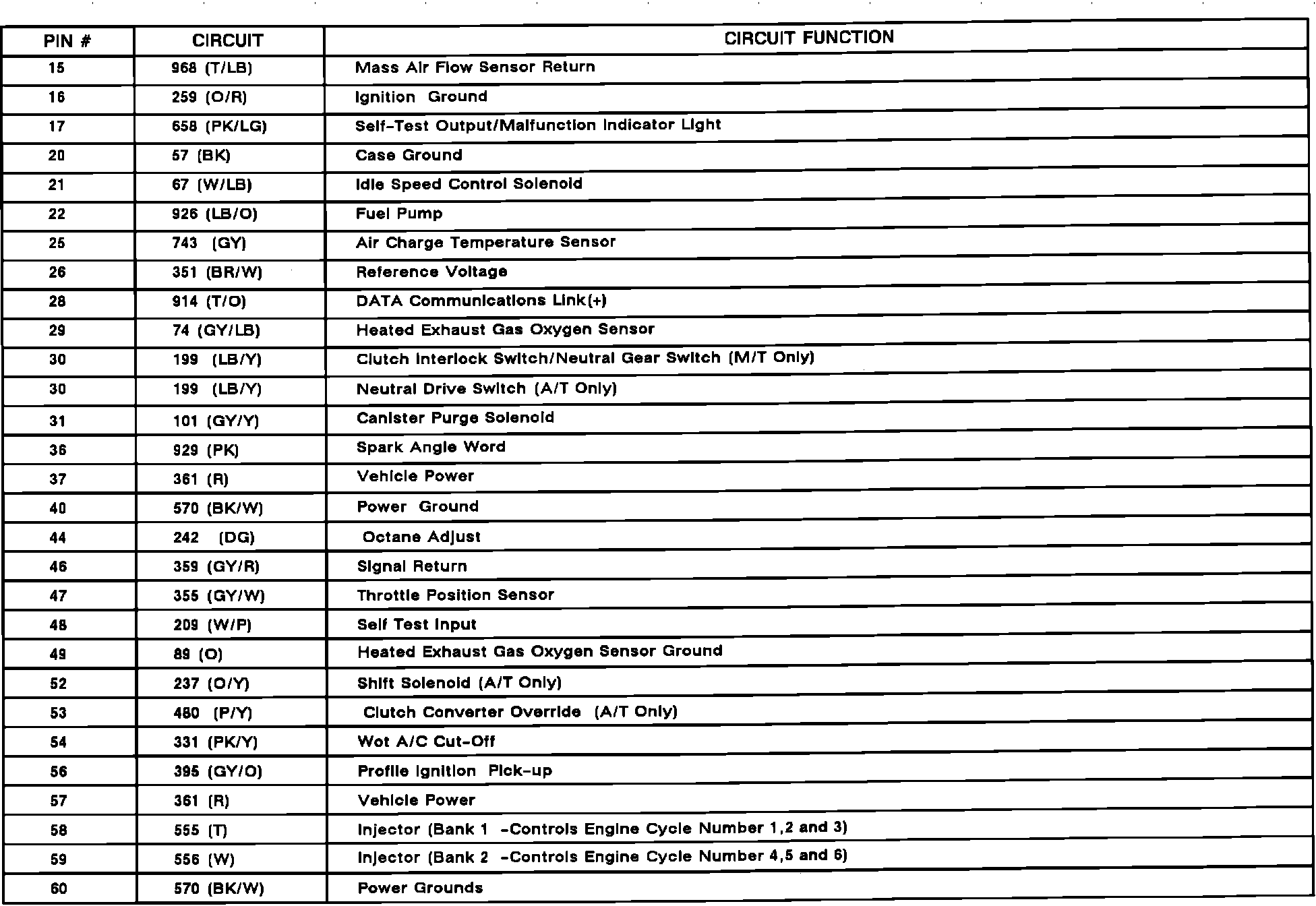 Electronic Engine Control Module Connector Pinout: