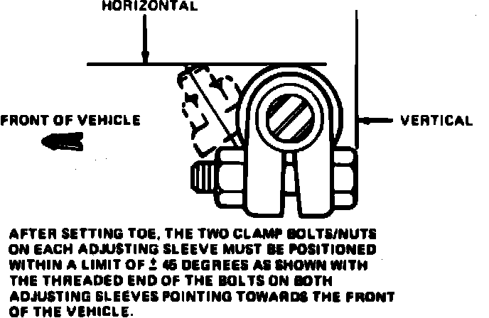 1. Loosen clamp bolts at each end of spindle connecting rod tube, then rotate the sleeve until correct toe alignment of 1/32 inch is obtained.