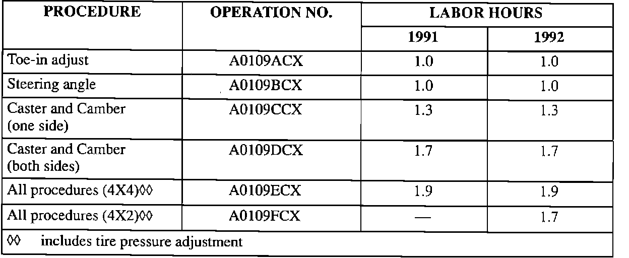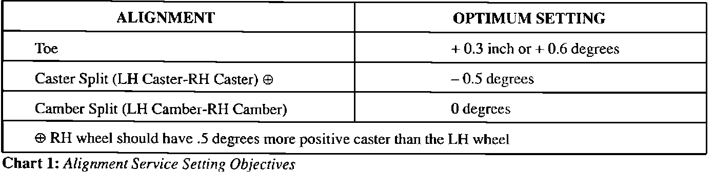 This bulletin provides optimum alignment settings for use when normal setting ranges do not correct a drift problem on Navajo vehicles. Chart 1.