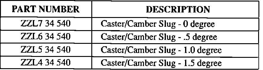 If the diagnostics in the Workshop Manual suggest that a front end alignment is needed, use the parts and specifications listed in this bulletin.