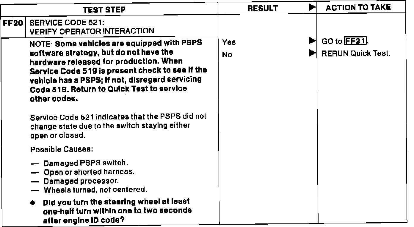 FF20 - Service Code 521: Verify Operator Interaction