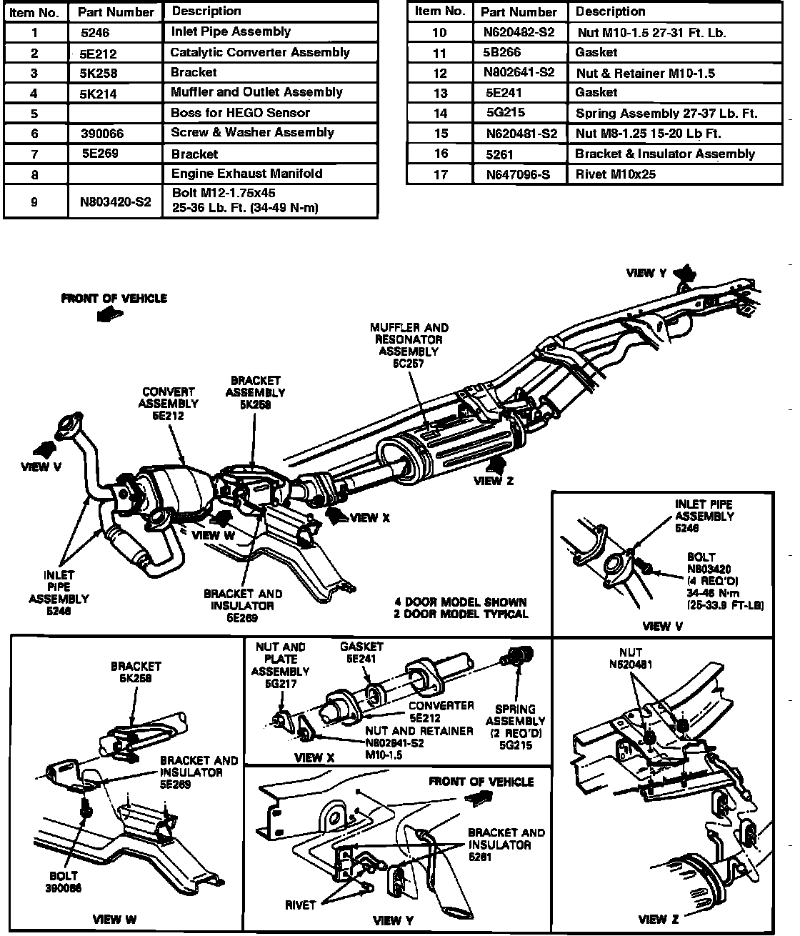 5. Install the converter to the outlet pipe using a new non-asbestos gasket. Install the fasteners and torque to 27-31 lb. ft. (36-42 N-m).